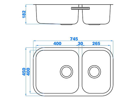 型號:666TD款式:雙盆安裝方式:臺底式總尺寸:745*450 mm大盆:400*400*182 mm小盆:265*400*182 mm