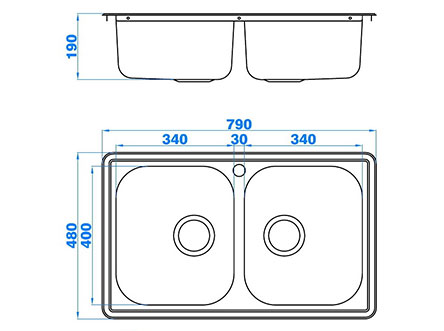 型號:664款式:雙盆安裝方式:嵌入式總尺寸:790*480 mm雙盆:340*400*190 mm