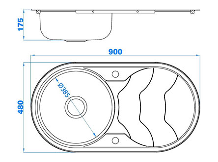 型號:234Y款式:單瀝水板單盆安裝方式:嵌入式總尺寸:900*480 mm大盆:Φ385*175 mm