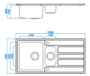 型號:161Y款式:單瀝水板雙盆總尺寸:1000*500*205 mm大盆:340*400*190 mm小盆:160*280*110 mm