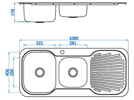 型號:103款式:單瀝水板雙盆安裝方式:嵌入式總尺寸:1080*480 mm大盆:320*400*180 mm小盆:280*290*130 mm