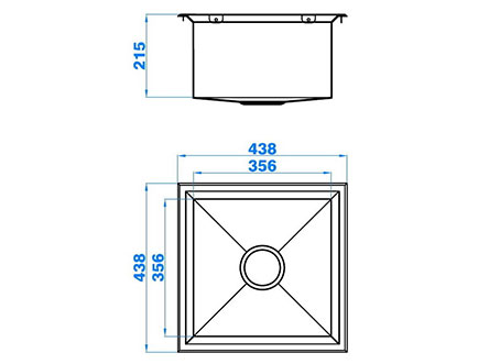 型號:5167款式:單盆安裝方式:嵌入式總尺寸:438*438 mm大盆:356*356*215 mm