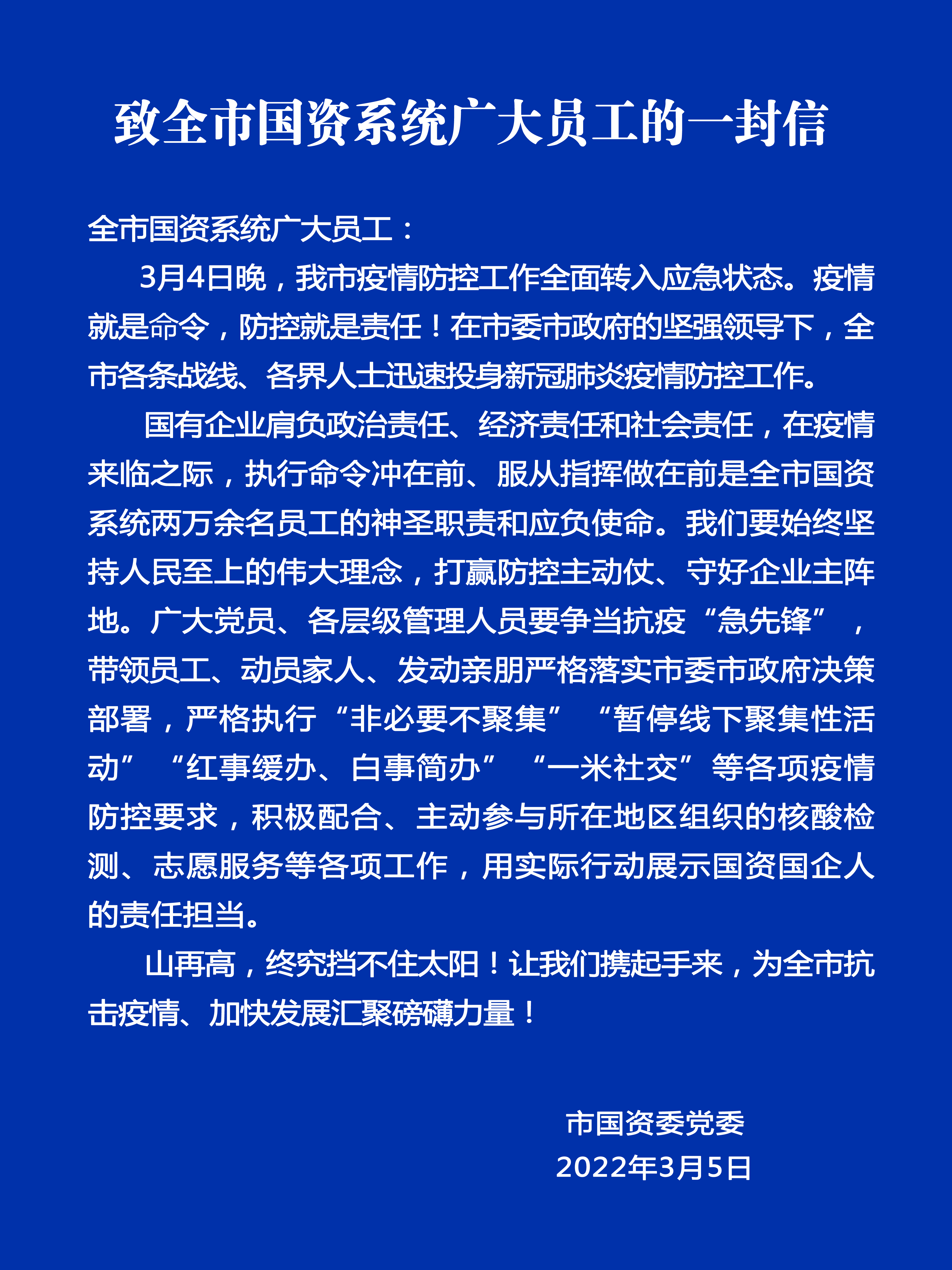 致全市國資系統廣大員工的一封信