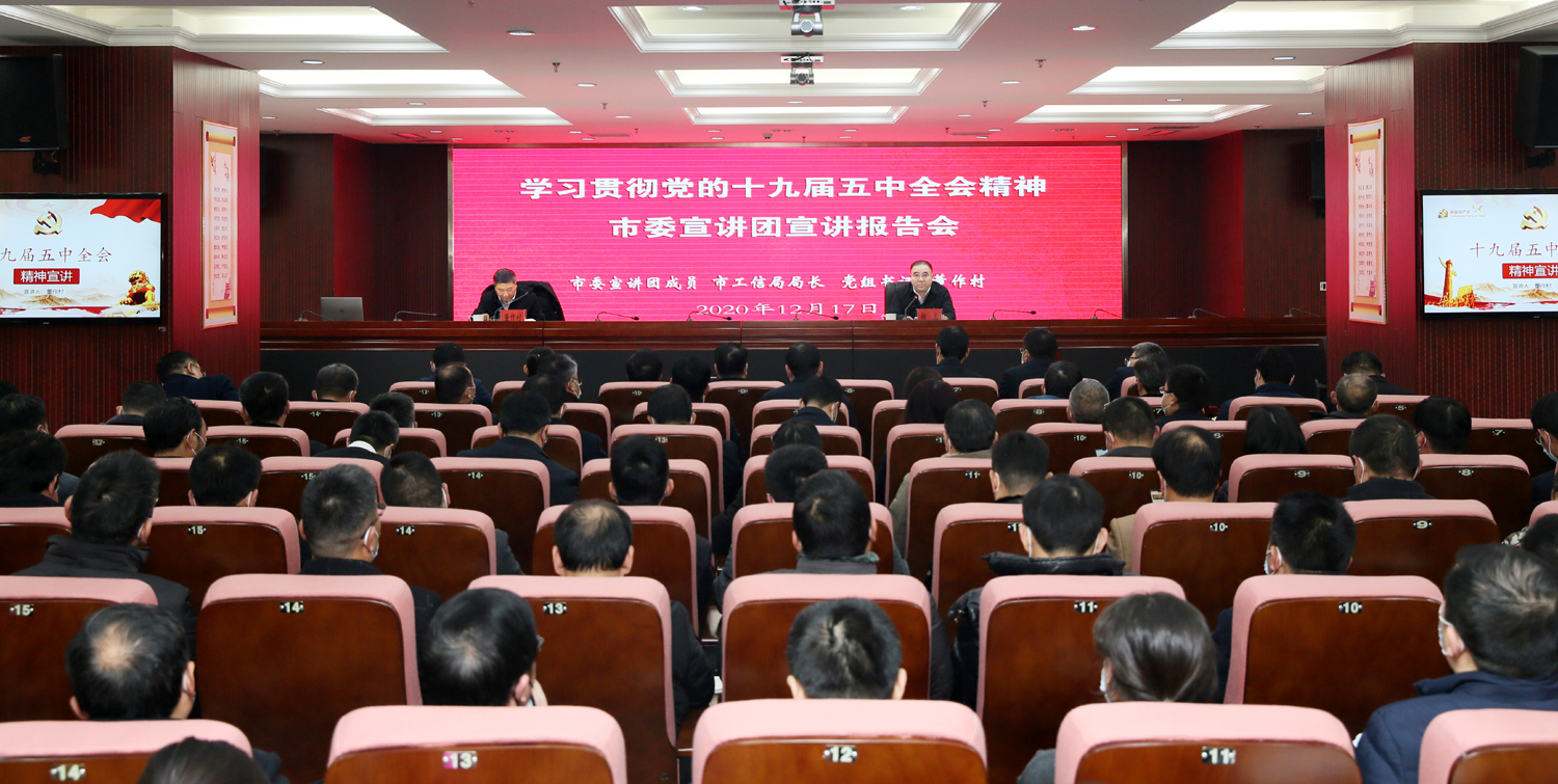 根據(jù)市委統(tǒng)一部署,12月17日,市委宣講團(tuán)來集團(tuán)開展黨的十九屆五中全會精神宣講活動(dòng)。市委宣講團(tuán)成員、工信局局長、黨組書記董作村作宣講報(bào)告。集團(tuán)公司黨委書記、董事長楊龍主持宣講報(bào)告會。