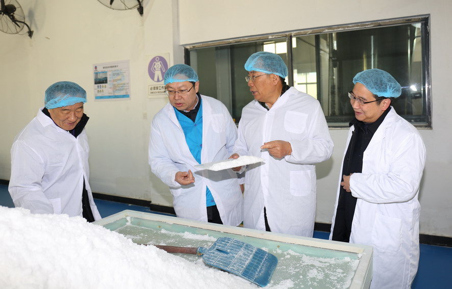 12月29日,中國鹽業(yè)協(xié)會理事長茆慶國一行到集團公司調研鹽業(yè)生產(chǎn)情況。集團公司常務副總經(jīng)理楊國新陪同。