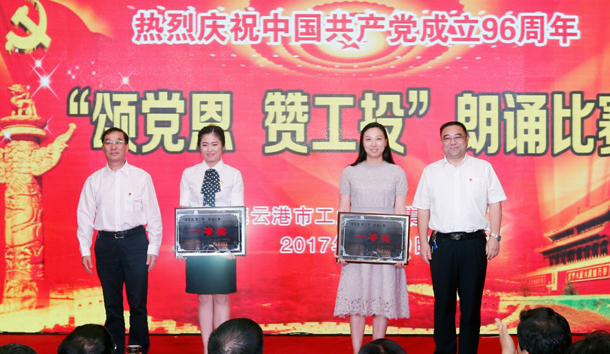 為慶祝中國共產(chǎn)黨成立96周年,緬懷黨的豐功偉績,6月29日下午,集團公司黨委在連云港職業(yè)技術(shù)學(xué)院文化藝術(shù)中心舉辦“頌黨恩·贊工投”朗誦比賽,集團公司領(lǐng)導(dǎo)楊龍、胡建明、張其海、王士華、戴鴻鳴、汪群、匡友本、陳如軍與來自集團公司各條戰(zhàn)線的近三百名代表歡聚一堂,共同慶祝黨的96歲華誕。