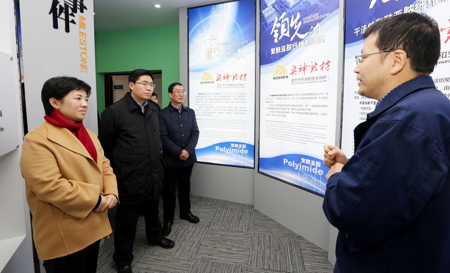 萬聞華一行先后參觀了奧神新材料公司展廳和生產(chǎn)車間,聽取了該公司目前的發(fā)展情況匯報,詳細(xì)了解高性能纖維產(chǎn)品的相關(guān)性能和發(fā)展前景,對該公司在纖維行業(yè)等方面取得的成績給予充分肯定。萬聞華希望奧神新材料公司要進(jìn)一步突出“高、新、優(yōu)”特色,不斷推動產(chǎn)業(yè)高端化、規(guī)模化、集聚化發(fā)展,為推動全市纖維新材料產(chǎn)業(yè)發(fā)展做出新的貢獻(xiàn)。