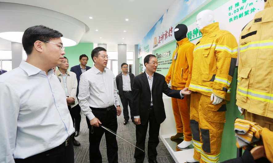 曹衛東一行先后參觀了奧神新材料公司展廳和聚酰亞胺高性能纖維生產車間,并聽取了相關情況匯報,對奧神新材料公司的研發能力和高性能纖維產業發展成效給予了充分肯定。曹衛東指出,奧神新材料公司成立五年來,以創新驅動轉型為動力,致力推進企業技術創新、產品創新和市場創新,取得了令人矚目的成績。“十三五”期間,作為高性能纖維自主研發制造企業、聚酰亞胺纖維干法紡絲生產核心技術的掌握者,奧神新材料公司要進一步突出高、新、優特色,切實踐行創新發展理念,加強自主知識產權保護,在聚酰亞胺纖維研發及生產方面著力突破新技術、提升創新力,推動產業高端化、規模化、集聚化發展,打造國內一流的新材料產業基地,為推動連云港市纖維新材料產業發展做出新的貢獻。