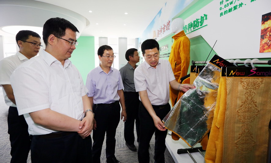 盧衛生副司長在參觀了奧神新材料公司展廳和生產線后,聽取了集團公司總經理胡建明、副總經理王士華關于奧神新材料高性能纖維產業發展介紹,近年來,奧神新材料公司始終秉承“創業、專注、匯聚、引領“的核心價值觀,以”致力于環境和生命的保護,成為全球領先的高性能纖維制造商“為發展愿景,不斷追求技術創新,聯合東華大學采用自主知識產權的干法紡絲生產技術開發聚酰亞胺纖維,在國際上屬于首創。盧衛生副司長對此予以了充分肯定,并希望奧神新材公司要不斷爭取政策支持,繼續加大與國內高校院所的產學研合作,以市場需求導向,追求產品差異化、特色化,延伸高新能纖維產業鏈,提升資源、渠道、品牌、標準等軟實力,形成以“技術、品牌、綠色”為發展核心的競爭新優勢,促進中國化纖行業的發展。