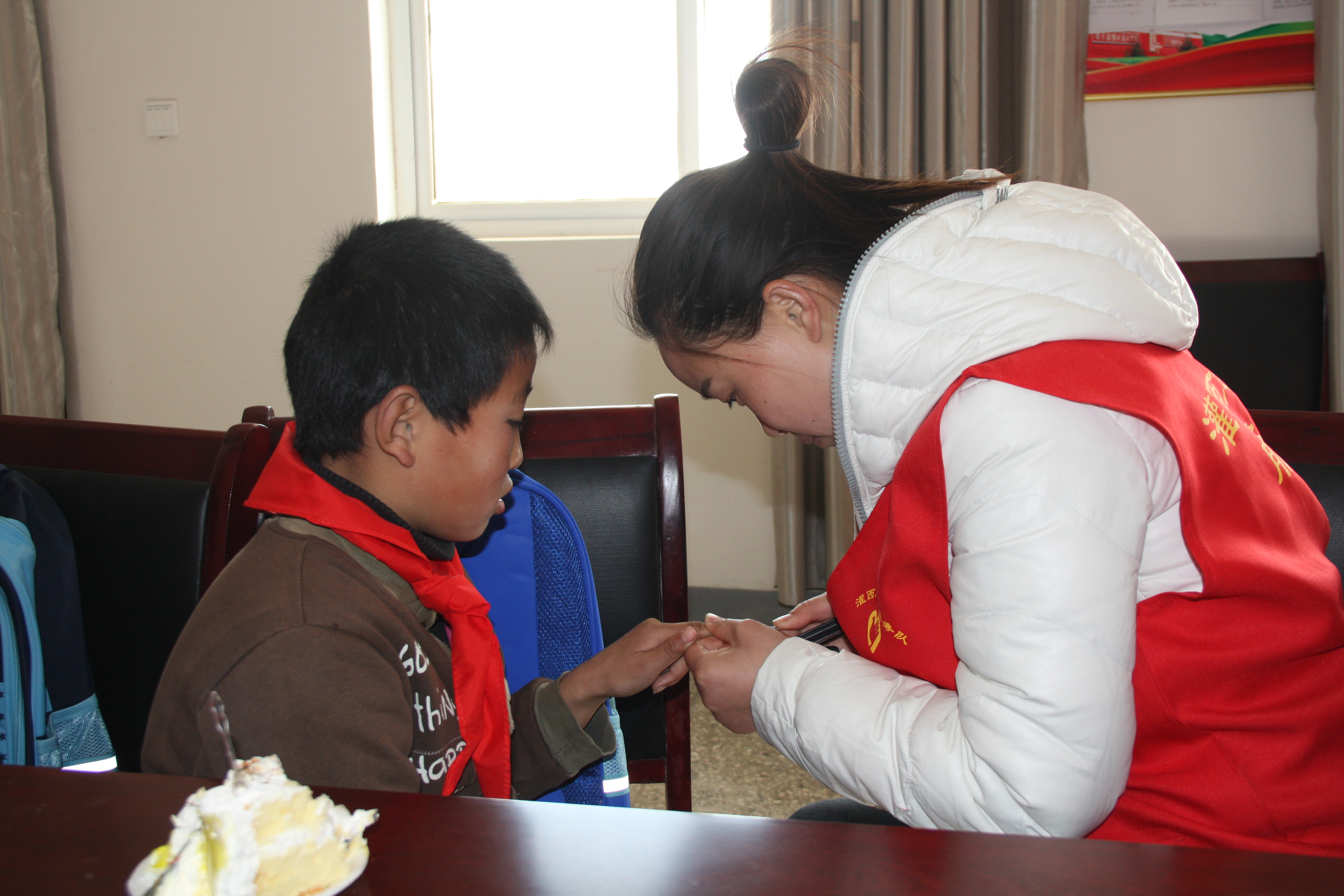 同時,志愿者們還把準備好的書包文具等學習用品送到孩子們的手中,孩子們?yōu)橹驹刚吲浯骷t領巾,并一一結對合影留戀,讓這初春多了一絲溫暖。通過本次活動,讓困難家庭兒童收獲溫暖的同時懂得感恩,并將這份愛心繼續(xù)傳遞下去,助力他們健康快樂的成長。
