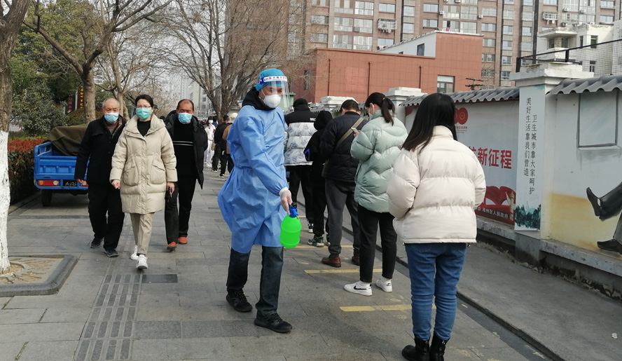 他們是知險而為的逆行者。疫情發生以來,投資公司各級黨組織深入推進“黨旗飄一線、戰疫沖在前”黨內專題教育實踐活動,涌現出王同林、汪洋、楊波、丁樂東等一批主動請戰上“疫”線的志愿者,成為港城“疫”線那一抹“天使白、志愿藍”風景里熠熠生輝的“徐圩點”。他們受居家隔離因素制約,就近參加街道社區的疫情防控工作,協助社區全方位開展核酸檢測、電話查訪、信息錄入、樓戶排查、場所消毒、巡邏宣傳等志愿服務工作。他們中間既有夫妻齊上陣,也有父子同站崗;既有在崗黨員,也有二線黨員。家住興業時代小區的侍作華、趙啟英夫婦,自參加防疫志愿行動以來,每天負責300份居民物資送貨任務,先是由妻子搬運到樓下,再由丈夫挨家送上門。相對于無電梯的多層樓,身穿“大白”的侍作華每天樓梯來回數十趟,即使是跑酸腿腳、濕透衣服、干了嗓子,也沒有遞減他堅持就是勝利的戰“疫”信心。作為工投集團防疫志愿服務隊隊員的孫海波,在派駐同科小區的日子里,每天身穿密不透風的“大白”防護服,一穿就是十幾個小時不下身,即便是汗水浸皺了雙手、臉頰勒出了溝痕,仍然馬不停蹄忙著安排人員做核酸、上門排查健康碼情況,近距離接觸黃、紅碼人員,和同事先后完成小區1000余戶家庭兩次排查和35000人次核酸檢測人員身份信息采集工作。被社區稱為“志愿書記”的胡可志,從戰“疫”動員令發出的當天,就志愿參加平山社區的防疫工作。一人多角色的他,既是秩序員,也是消毒員;既是喊話員,也是宣傳員;既是居民健康碼的驗證員,也是“一米線”距離的監督員。在連續多天的志愿服務中,也讓社區人員徹底認可他這位不錯的“組織員”。悅升公司居家隔離的青年員工潘浩聽說單位值守員工王亮因突發哮喘舊疾,及時通過社區報備、藥房購藥、卡口傳藥等環節把應急藥物轉送到王亮手中,成為架設“愛心通道”的有心人。