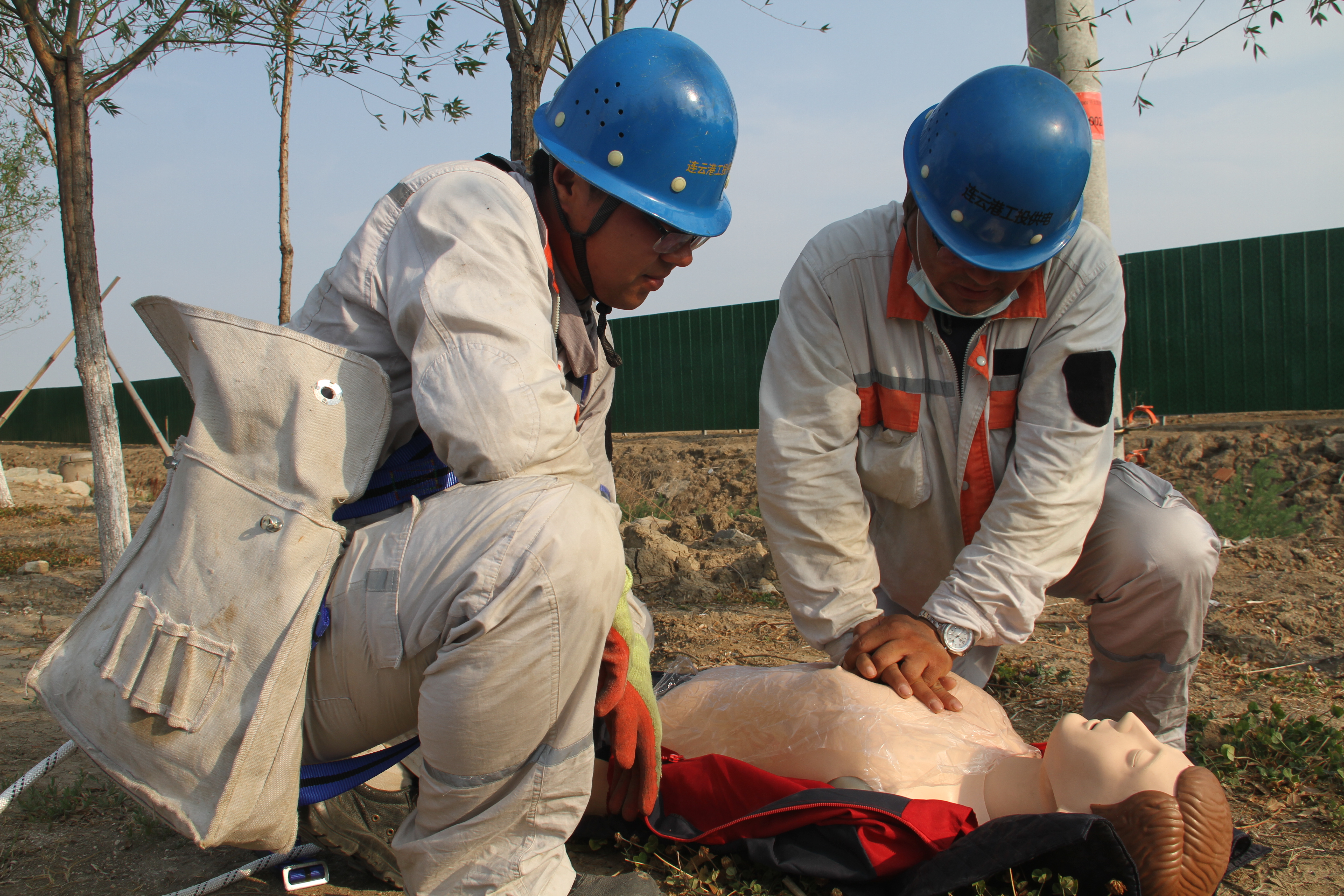 本次活動(dòng),模擬臺(tái)北變電所10KV開太線創(chuàng)智街區(qū)支線2#桿AB接地短路,絕緣導(dǎo)線過負(fù)荷,燃燒滴落物引燃路邊雜草;1名線路搶修人員處置時(shí)發(fā)生高處墜落。承辦單位臺(tái)北供電所現(xiàn)場(chǎng)運(yùn)行值班人員按操作票流程模擬倒閘操作、并宣讀流程,撥打公司值班室電話,搶險(xiǎn)救援組接到電話,向總指揮匯報(bào),總指揮下達(dá)搶修救援指令。隨即臺(tái)北供電所派出2名外線人員,進(jìn)行干粉滅火器滅火模擬操作,搶修救援組立即奔赴現(xiàn)場(chǎng),了解情況展開工作,采取初步救援措施;醫(yī)療救護(hù)小組人員配合所內(nèi)救護(hù)人員1名,同步領(lǐng)取物資。現(xiàn)場(chǎng)模擬醫(yī)療救援,進(jìn)行傷口消毒處理,無(wú)菌紗布綁扎演示,醫(yī)療救護(hù)組處理完畢,宣讀傷情另外嚴(yán)重情況,須120急救,啟動(dòng)應(yīng)急程序,模擬撥打120電話。模擬人員進(jìn)行上桿裝備、勞保裝備穿戴演示,宣讀注意事項(xiàng),并進(jìn)行分支箱接頭、安裝、斷線緊線操作演練等。活動(dòng)環(huán)節(jié)結(jié)束后,安全管理部劉福勇宣告事故應(yīng)急救援結(jié)束。
