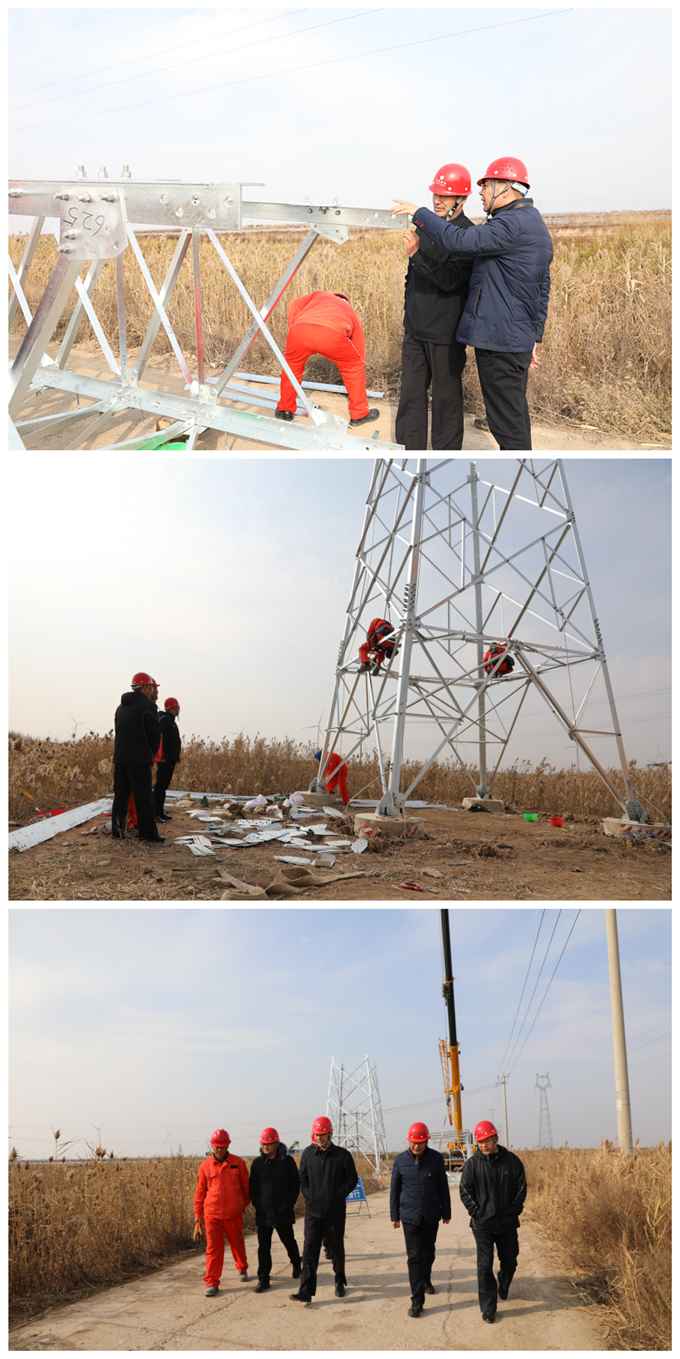 在施工現(xiàn)場,施工人員們正緊張忙碌地組裝鐵塔,搶抓工期。在察看了施工現(xiàn)場、聽取了施工隊隊長孫迎照的施工情況匯報后,陳總對該工程的施工進度和施工質量等建設情況表示了充分肯定,對奮戰(zhàn)在施工一線的職工表示了慰問。針對下一步工作,他指出,一是要提高認識、相互協(xié)調(diào)、密切配合,著力解決工程推進中存在的困難和問題;二是要全力抓好安全工作,增強安全意識,加強施工現(xiàn)場安全掌控,增措施、抓落實、全面排除安全隱患;三是要加大施工力度,嚴格按照工程施工規(guī)劃施工,嚴把工程質量安全關,確保工程穩(wěn)步推進、保質保量按期完成。