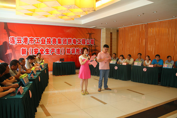 為了增強企業員工的安全意識,強化安全生產依法治理。近日,公司在淮鹽大酒店舉行安全知識搶答賽。來自該公司機關及各單位的8支代表隊共24名選手參加了比賽。