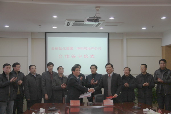 12月30日下午,集團公司領導顧永庚、胡建明、楊國新來到灌云縣人民政府,與灌云縣委書記、縣人大常委會主任魯林、縣長陸永軍等領導親切會談,共商合作事宜。在會談中,集團公司與灌云縣人民政府簽訂了礦鹵鹽田合作協議,與坤和房地產公司簽訂東園酒店合作協議并委托公司代表集團公司,全權管理東園國際大酒店。