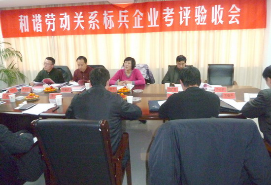 12月22日下午,在集團公司工會副主席盧同根陪同下,市總工會副主席許東方率領(lǐng)市創(chuàng)建和諧勞動關(guān)系標兵企業(yè)考評組一行4人,對公司創(chuàng)建工作進行考評驗收。