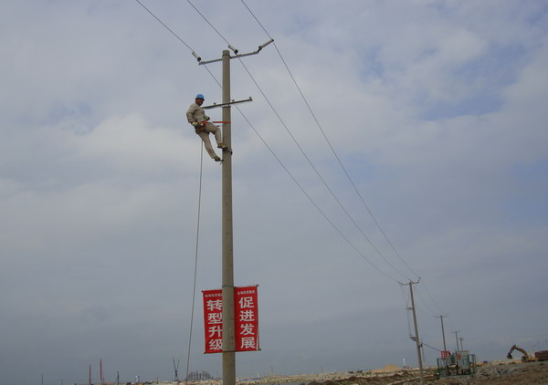 8月27日,該所接到連云新城建設(shè)指揮部通知,要求在施工道路沿線全部架設(shè)臨時路燈,并在8月31日完成,以加快新城工程建設(shè)進度。這需要在短短三天內(nèi)安裝60盞路燈、架設(shè)3000米照明線路與部分電桿。該所領(lǐng)導(dǎo)班子既感受到新城建設(shè)指揮部領(lǐng)導(dǎo)的信任,又深感任務(wù)的艱巨。面對人員少、工程急、施工地形復(fù)雜等困難,該所安排人員抓緊制定方案,準備材料,并積極組織人力,除留下變電所和電費收繳值班人員外,其余人員全體出動。一場與時間賽跑、與困難抗爭的會戰(zhàn)在連云新城建設(shè)工地上拉開了序幕。