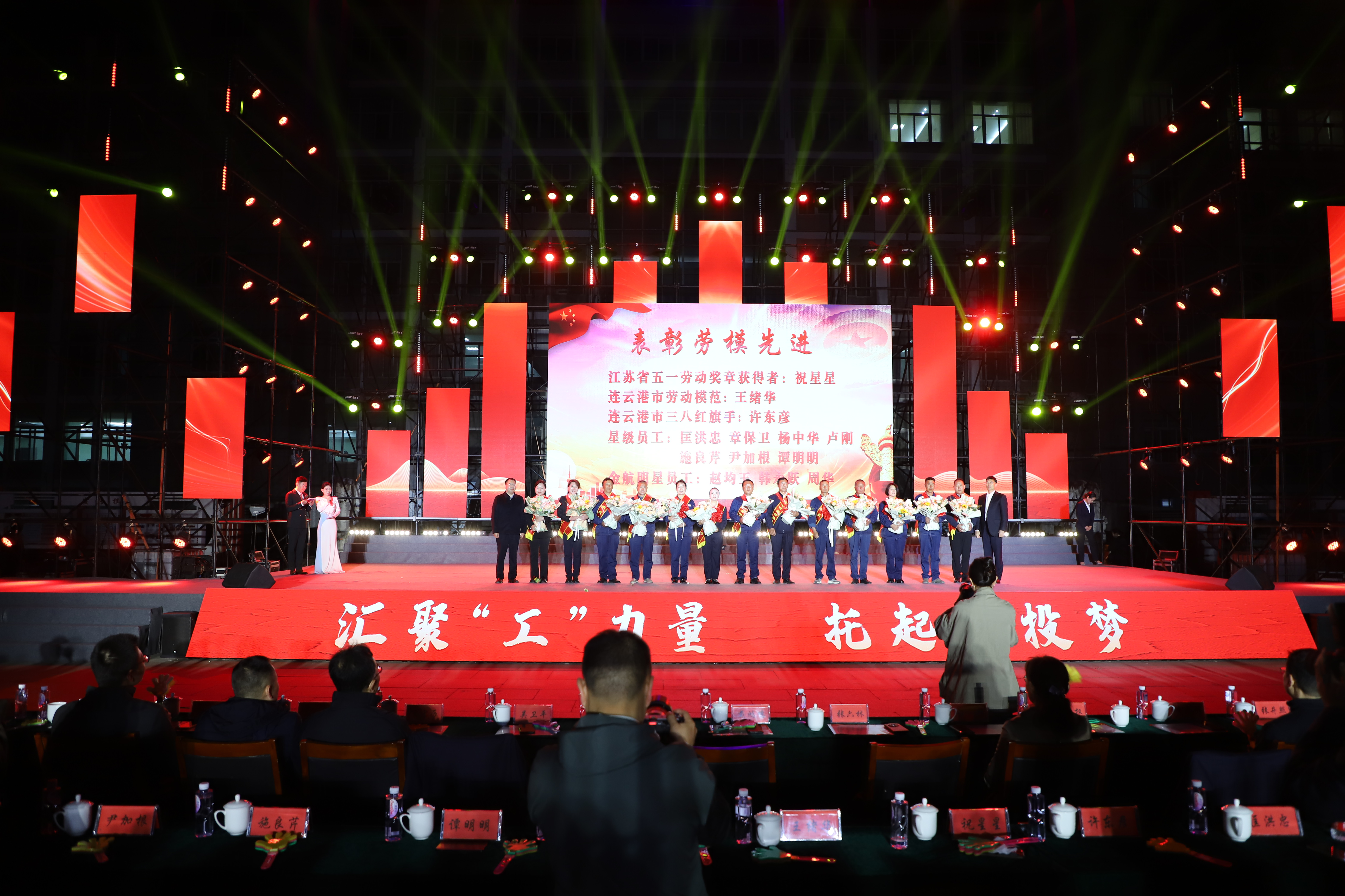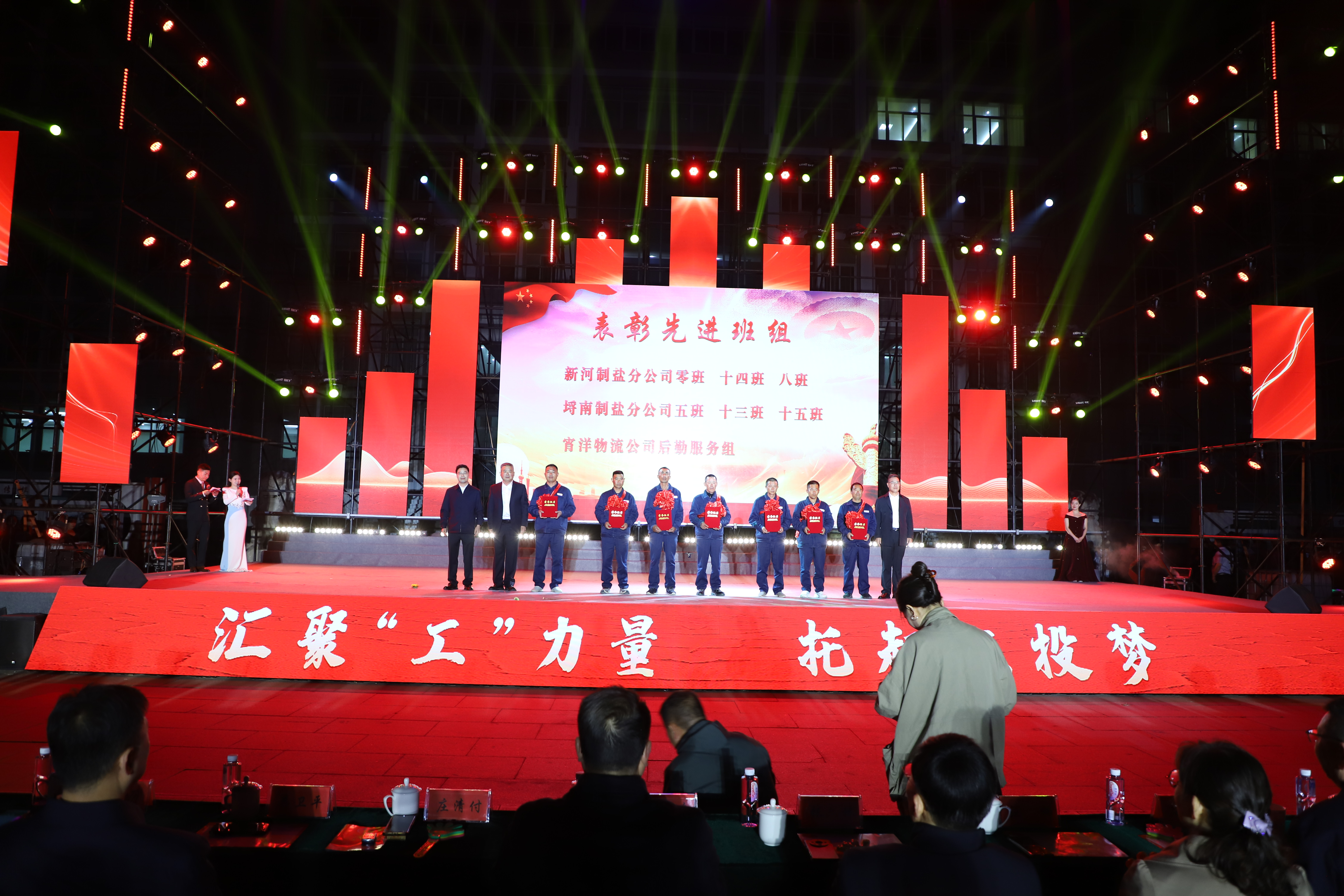 本次文藝匯演有歌舞、三句半、音樂(lè)快板、朗誦、相聲、歌曲串燒、歌曲獨(dú)唱、大合唱等豐富多彩的節(jié)目,其表演形式和精彩內(nèi)容引人入勝,火熱絢麗的舞臺(tái)、貼近職工生活的節(jié)目?jī)?nèi)容、公司熱火朝天的奮斗場(chǎng)景,呈現(xiàn)了灌西人對(duì)企業(yè)的深沉情感和對(duì)工作生活的激情與熱愛(ài)。演出在開(kāi)場(chǎng)群舞《盛世歡歌》拉開(kāi)帷幕,整個(gè)演出分為“禮贊·勞動(dòng)最光榮”“鑄魂·勞動(dòng)最崇高”“閃耀·勞動(dòng)最美麗”“輝煌·勞動(dòng)最偉大”四個(gè)篇章,三句半《凝心聚力譜新篇》、舞蹈《沸騰的鹽灘》、音樂(lè)快板《后發(fā)先至看工投》等都是灌西職工自編自演的節(jié)目,充分展現(xiàn)了灌西員工朝氣蓬勃、奮發(fā)向上的精神面貌,以及對(duì)公司創(chuàng)新發(fā)展、職工幸福安康的美好祝愿。灌西公司黨委書記、董事長(zhǎng)孫政權(quán)和金航公司黨總支書記、總經(jīng)理莊清付分別登臺(tái)獻(xiàn)藝,為大家表演了歌曲獨(dú)唱《我是一條小河》和配樂(lè)詩(shī)朗誦《我驕傲,我是中國(guó)人》,得到職工觀眾們熱烈的掌聲。小合唱《咱們工人有力量》、大合唱《新時(shí)代新家園》《沒(méi)有共產(chǎn)黨就沒(méi)有新中國(guó)》等節(jié)目把現(xiàn)場(chǎng)的氣氛推向了高潮,有力展現(xiàn)了全公司職工們激情澎湃、昂揚(yáng)奮進(jìn)的精神面貌。在文藝演出中間,還分別對(duì)公司各條戰(zhàn)線的勞模先進(jìn)代表、先進(jìn)單位、部門和班組進(jìn)行了表彰。(西宣)