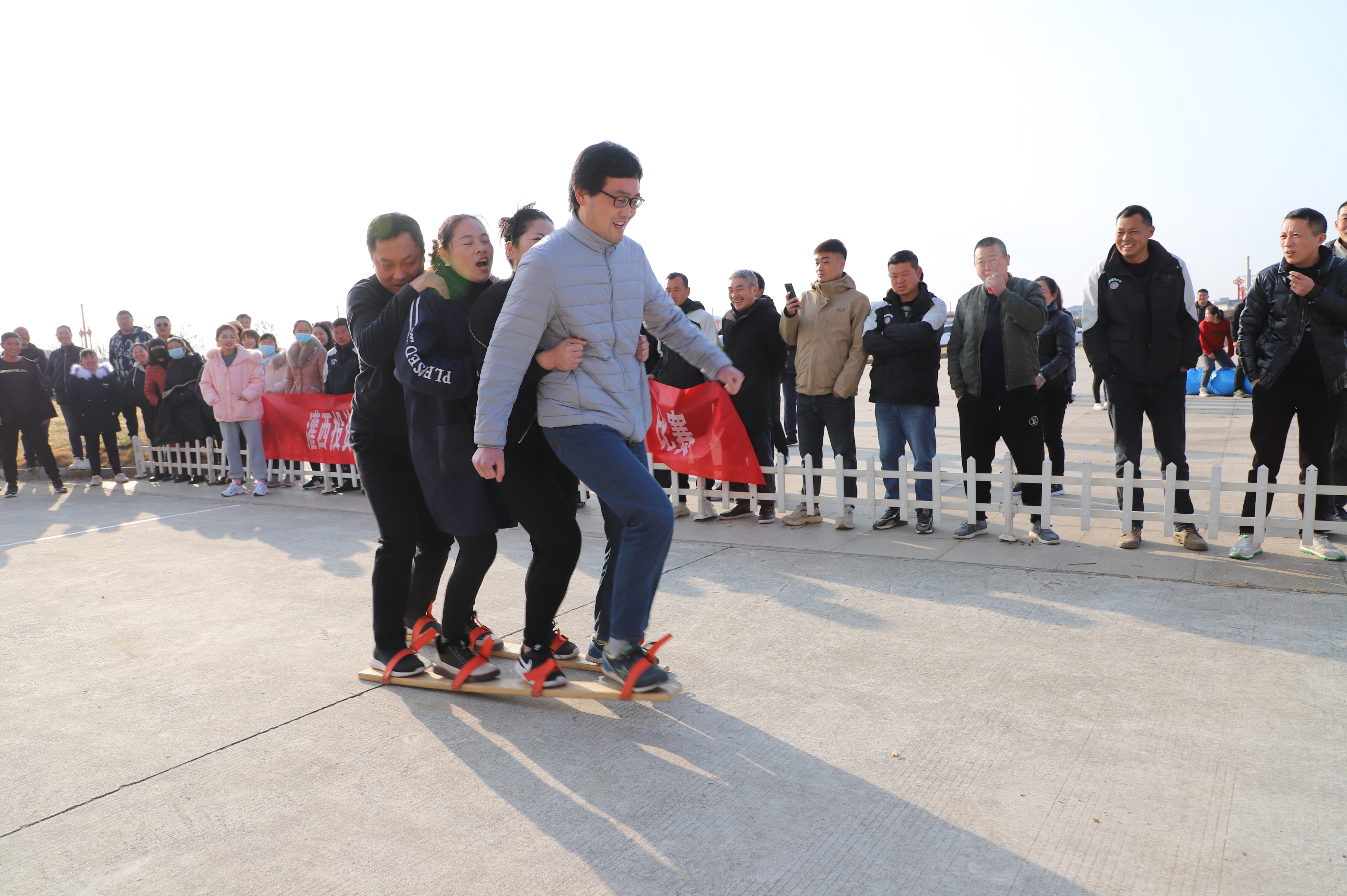 12月23日上午,投資公司第九屆職工文體周趣味運動比賽在機關大樓廣場開賽,公司各單位組織十支隊伍參加比賽,考驗著各參賽隊選手之間配合與協調性。缺少默契的隊伍,沒走幾步就人仰馬翻,反觀配合默契的隊伍一往直前,奔向終點。新河制鹽分公司代表隊隊員的運動鞋被同伴踩掉,依然沒有放棄比賽,赤著一只腳完成了比賽,充分體現了團隊精神,也充分展示了灌西職工的良好精神風貌。