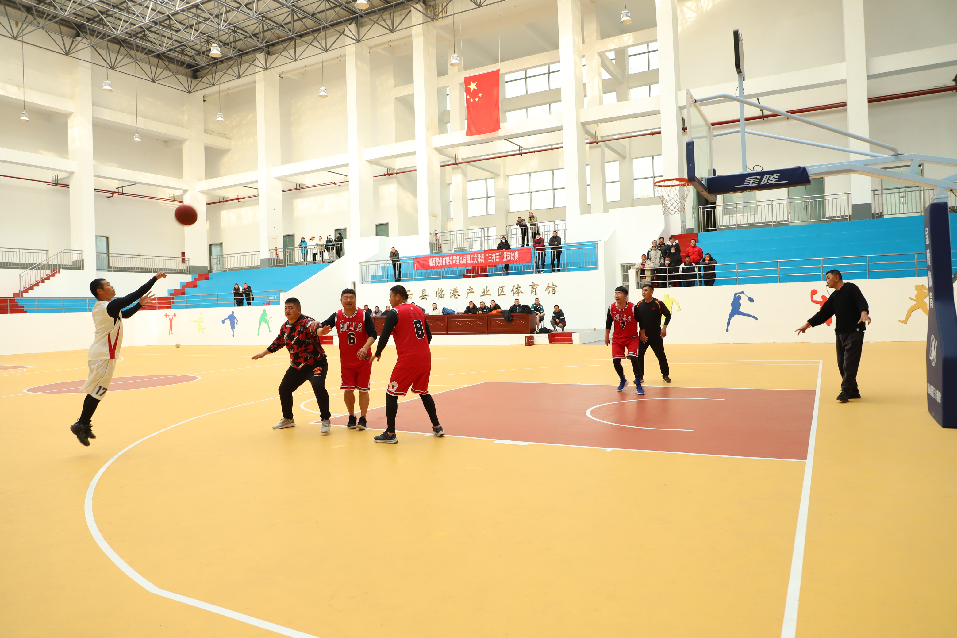 下午,“三打三”籃球賽在管委會籃球館正式開賽,雖然天氣寒冷,但依然不減籃球比賽的火熱氣氛。比賽還沒開始,參賽選手們早早的就開始進行著熱身準備,賽場外,更有許多灌西公司職工、群眾前來觀看比賽。14點整,隨著裁判的一聲哨響,比賽正式開始。賽場上,隊員們互相配合,頑強拼搏,奔跑、搶球、擋拆、投球的勁一個比一個足,雙方隊員你爭我奪,每一個參賽隊員都把各自的看家本領展示出來,場面甚是熱鬧、精彩。球場下,觀眾們加油吶喊,為隊員鼓勁。伴隨著場上隊員的一次次精彩表現,現場不時響起觀眾的掌聲和喝彩聲。