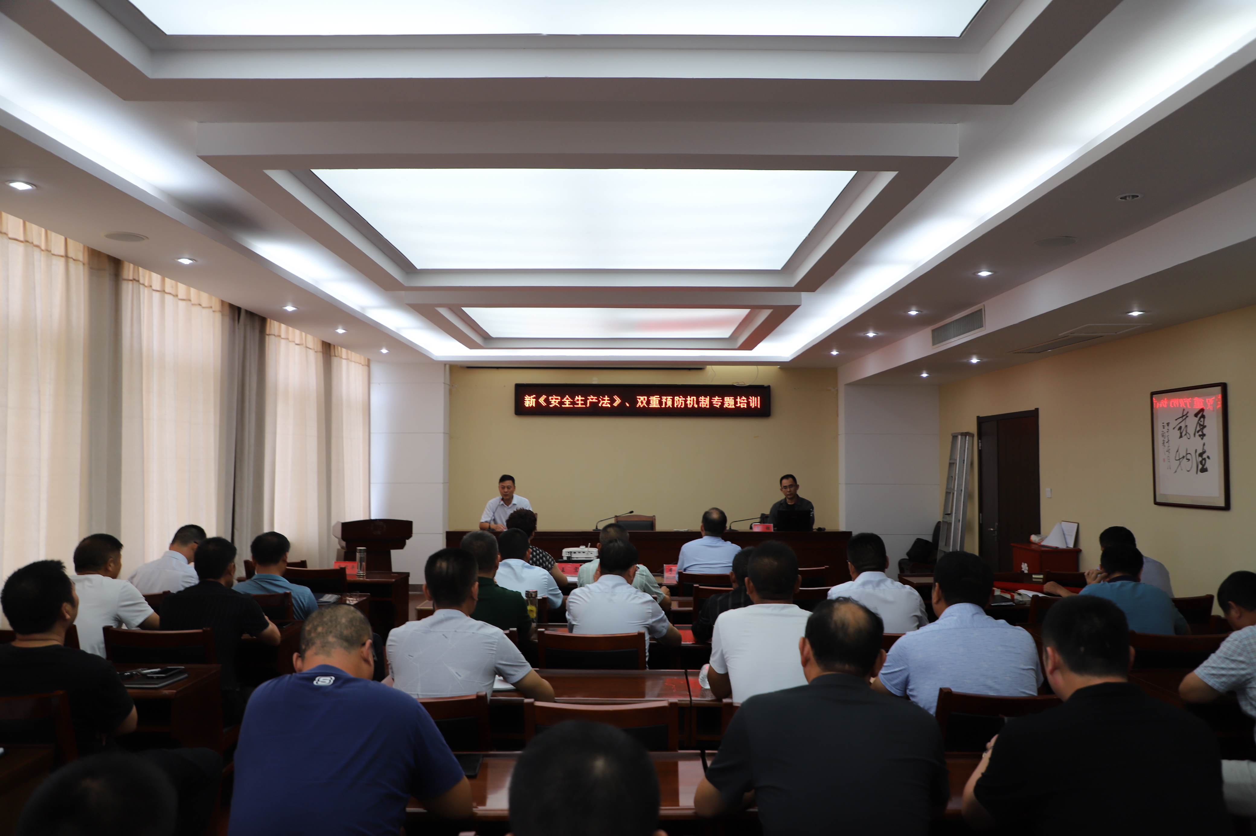 為了努力提高管理人員的安全意識,增強安全生產的責任感,9月23日特邀請連云港師范學校的教授來我公司進行新《安全生產法》、雙重預防機制專題培訓,公司領導班子成員、各部門負責人、各單位負責人、分管安全管理人員參加培訓。