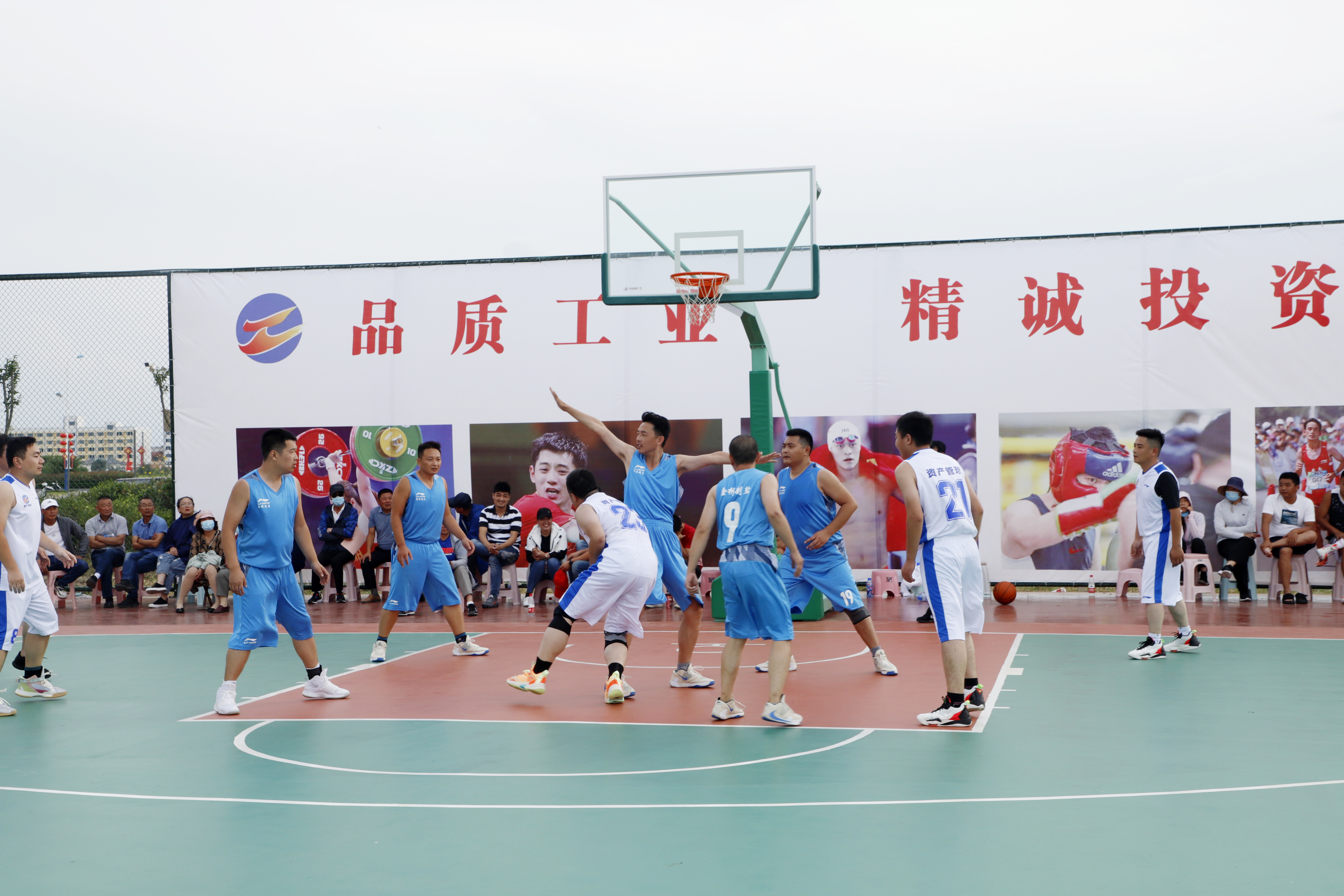 下午最后一場比賽是金橋制鹽公司對戰資產公司,首節比賽兩隊互有攻防,金橋制鹽代表隊5號,行動迅速,利用快攻屢屢得分,21號身強體強壯主攻籃下,21:1結束半場;下半場資產隊積極組織進攻,雖然分數落后,但是依然不放棄,敢打敢拼,利用遠投補足籃板弱項,最后還是以14:47敗北。(靳靜)