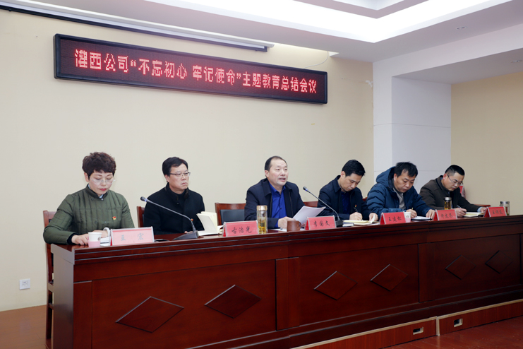 1月16日下午,灌西投資公司在機(jī)關(guān)四樓會(huì)議室召開(kāi)“不忘初心、牢記使命”主題教育總結(jié)會(huì)議。投資公司主題教育領(lǐng)導(dǎo)小組組長(zhǎng)、黨委書(shū)記、董事長(zhǎng)、總經(jīng)理李國(guó)文作主題教育總結(jié)講話(huà)。集團(tuán)第四指導(dǎo)組組長(zhǎng)王建松到會(huì)指導(dǎo)并講話(huà)。公司黨委副書(shū)記、紀(jì)委書(shū)記、工會(huì)主席王宏主持會(huì)議,各單位黨政主要負(fù)責(zé)人、黨群工作部、公司黨委主題教育領(lǐng)導(dǎo)小組辦公室、機(jī)關(guān)全體黨員參加會(huì)議。
