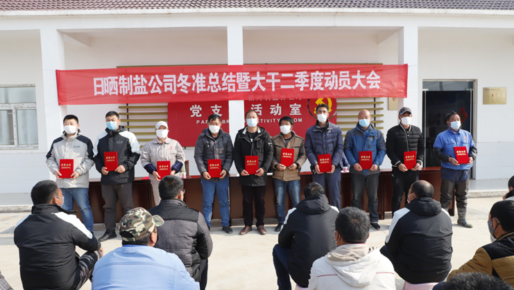 3月18日,日曬制鹽公司在新河制鹽分公司生產灘頭召開冬準總結暨大干二季度動員大會,黨委書記、董事長、總經理李國文主持會議并講話,為完成2020年各項生產工作再動員、再發力、再部署、再出發,幫失去的時間搶抓回來。常務副總經理古浩光對冬準工作進行了全面總結,并對二季度工作進行了安排部署。黨委副書記、紀委書記、工會主席王宏宣讀了冬準勞動競賽表彰決定和大干二季度勞動競賽方案。