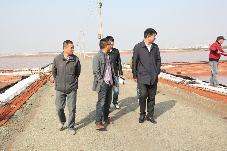 10月27日上午,王德志董事長深入日曬制鹽生產一線,就目前的原鹽生產的重點問題、一線生產現狀等進行了調研,新河分公司、生產服務中心相關人員陪同調研。