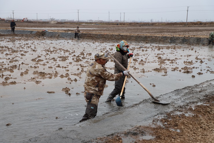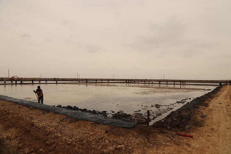 11月29日上午,雖然天氣寒冷,但是在海鹽基地新改造的制鹵灘上,卻到處是一派火熱的勞動景象,參加“大會戰”的工人多達100余人,只見他們有的潑水,有的鏟泥,有的撈溝,有的做埝,大家分工協作。據了解,為了提高海水制鹵能力,確保海鹽產量,今年公司專門對海鹽基地部分廢棄灘地進行了改造,以進一步增加制鹵面積。近期,隨著改造工程接近尾聲,公司又組織精干力量對新改造灘地繼續進行修整,以確保新建的制鹵灘地能夠盡快投入使用,為明年海鹽生產工作的正常有序開展奠定扎實的基礎。