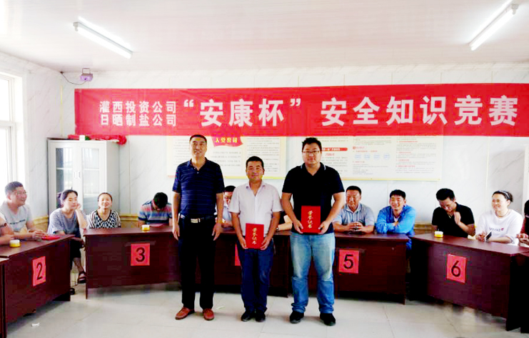 安全知識競賽活動是該公司開展的安全生產月活動的一部份,競賽活動分為預賽筆試環節和決賽必答、搶答環節,共有新河制鹽分公司等十一支代表隊參加比賽,比賽內容主要為安全生產基本常識、新《安全生產法》等,通過筆試有八支代表隊進入決賽,參加搶答比賽。搶答比賽分為必答題、搶答題、和觀眾題等多種形式,整個搶答比賽過程緊張激烈,選手搶答積極,流暢作答,比分依次上升,搶答環節險情頻頻,有的代表隊搶答違規被扣分,好容易搶到的分數又被扣了,有的代表隊稍顯謹慎,很少搶到答題,但穩打穩扎,得分依然不低。最終,生產服務公司代表隊獲得一等獎,新河制鹽分公司一隊、新河制鹽分公司二隊獲得二等獎,南翼綠化公司、宵洋物流公、埒制鹽分公司一隊獲得三等獎。