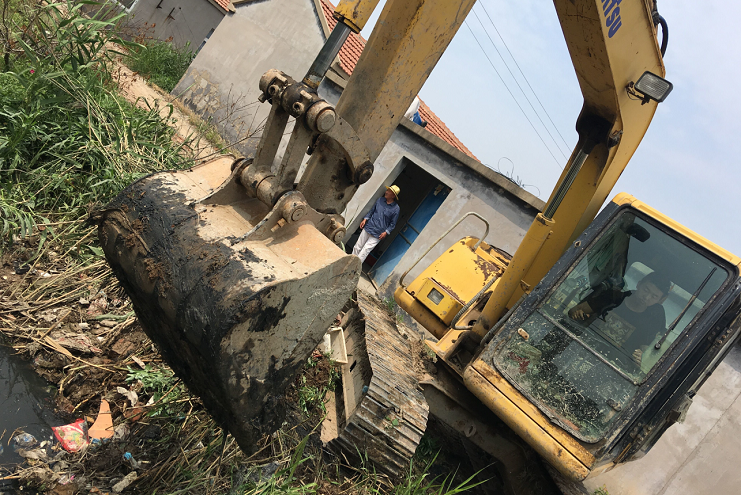 "各項防汛工作中,當數中二圩排水道堵塞問題最為突出,由于之前的燕尾港鎮(zhèn)拆遷,大量拆遷戶涌入灌西鹽場中二圩地區(qū)生活,違建現象嚴重,各種建筑垃圾和白色垃圾隨處堆放,排水系統深受其害。為方便職工群眾生活起居,灌西公司對中二圩地區(qū)排水道進行疏通清理,以便安度汛期。”清理現場,," 防汛辦公室主任楊善兵說道,只見大小挖機全力施工,對于大挖機不好進入的居民區(qū)內部小溝小道則由小挖機專門清理,對于復雜地形機械難以進入的地方只能人工清理,務求做到全面徹底,不留死角。