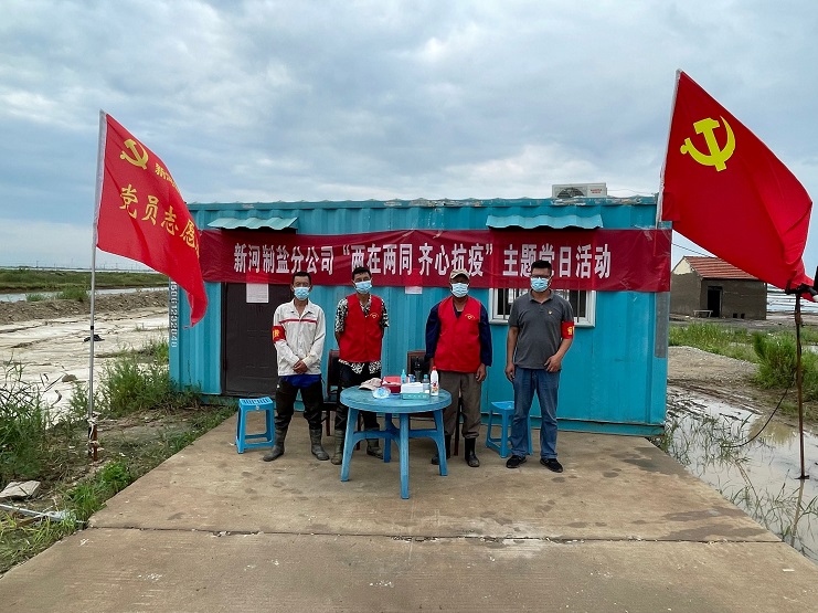新河制鹽分公司根據投資公司黨委安排,在零班二期設立卡點,嚴格落實領導干部24小時帶班、值班和疫情突發狀況報告等制度,支部亮旗、黨員亮徽、職工亮力,共同織就公司疫情防控網。一個支部就是一座堡壘,一名黨員就是一面旗幟,全公司黨員紛紛亮出身份,主動請纓,沖鋒在前,放棄假期積極投身最需要的地方,用行動踐行初心使命,全力打好這場疫情防控阻擊戰!(新河黨支部)