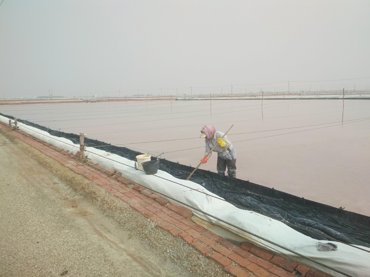 每一個女孩都喜歡美麗的衣服,都喜歡把自己裝扮得漂亮迷人。可是工作的特殊性不允許鹽灘工“貌美如花”。周娟,37歲,新河制鹽分公司5班一名普通的女工,她關注班組集體事務,能夠團結、關心班組女工,并積極帶領女職工昂揚向上,奮發有為,為單位鹽業生產多作貢獻。周娟特別注重對新上崗的員工培訓教育工作,她總是不厭其煩講解原鹽操作流程及工作中的注意事項和安全隱患,毫不保留將自己多年的經驗傳授給大家。炎熱的夏天,當大家坐在辦公室,吹著空調、喝著冰水時,她和她的同事依舊在鹽灘忙碌著,嬌嫩的皮膚被曬得黝黑。盡管如此,她依然每天駕駛著活茬機,一遍又一遍地游走在鹽田,將汗水撒在工投。