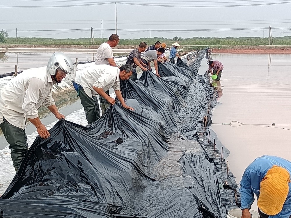隨著主汛期到來,由于各班組部分塑布已達(dá)使用年限,老化嚴(yán)重,且容易造成鹵水跑漏現(xiàn)象發(fā)生,為了減少鹵水損耗,7月10日,新河制鹽分公司黨支部組織黨員突擊隊到班組對到期塑布進(jìn)行更換。
