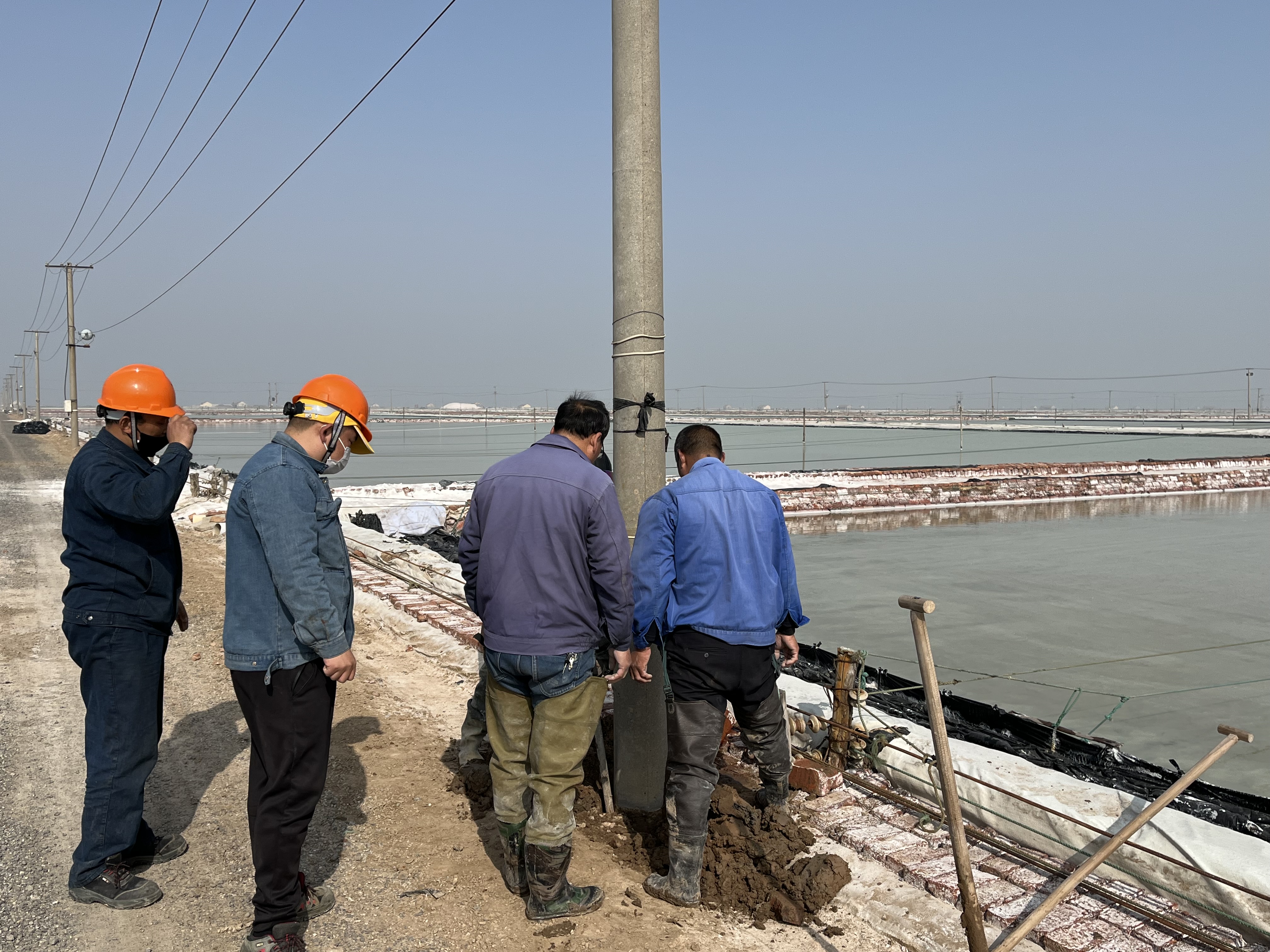 經過多年的風吹雨打,新河制鹽公司四班大池道邊上的電線杠出現大面積傾斜現象,嚴重影響安全生產。9日上午,公司安全負責人趙斯忠,組織部分后勤及班組人員一起為整改工作出點子,解決本次隱患整改的難點。