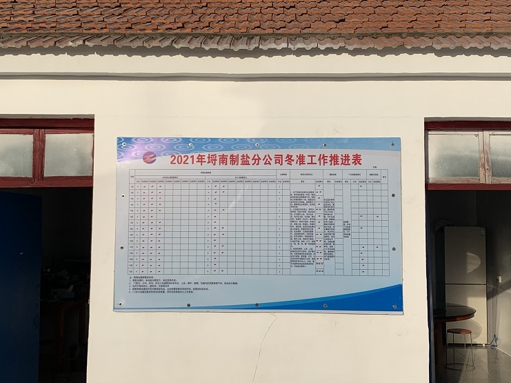 冬季是日曬制鹽收儲鹵水、扒土塘、整理灘場文明的最佳時期,也是為2022年工作起好頭、邁好步的關鍵時期,為更好落實“冬準”大會會議精神,12月6日上午,埒南制鹽公司制定冬準工作推進表,張貼在公司辦公區域墻面上,成立“指揮部”掛圖作戰,打好冬準戰役促。