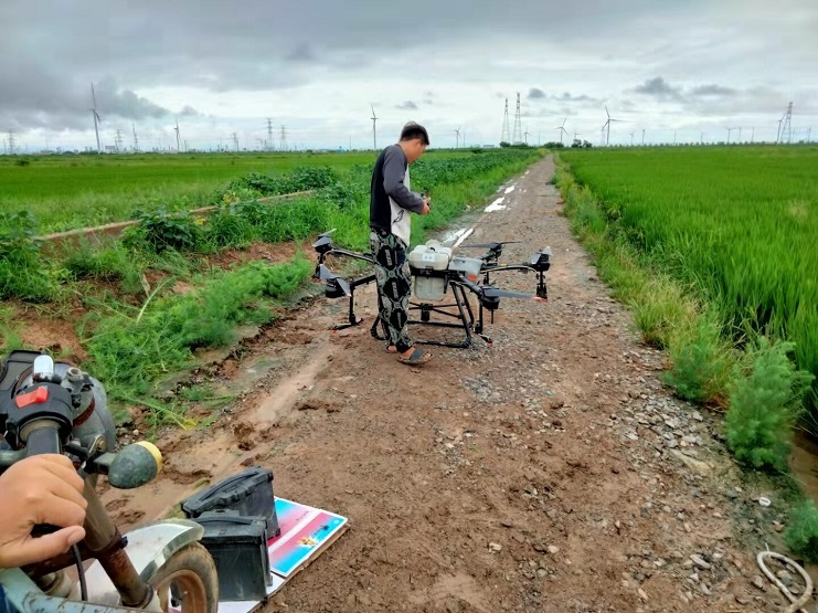 近日,明威公司農(nóng)田水稻進(jìn)入穗期,是水稻形成產(chǎn)量的關(guān)鍵時(shí)期,為切實(shí)做好水稻期病蟲(chóng)害防治工作,明威公司組織員工在下雨間隙,用一臺(tái)無(wú)人機(jī),對(duì)二灣種植區(qū)的稻田噴施除蟲(chóng)農(nóng)藥——齊,以增強(qiáng)水稻對(duì)病蟲(chóng)害的防控能力。