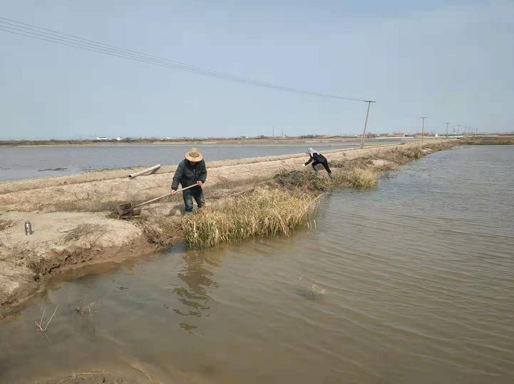 近日海水鹽基地一班在班長金立柱帶領下,職工思想統一,任務明確,決心一致,主動放棄節假日,埋頭苦干,全力清除大米草。