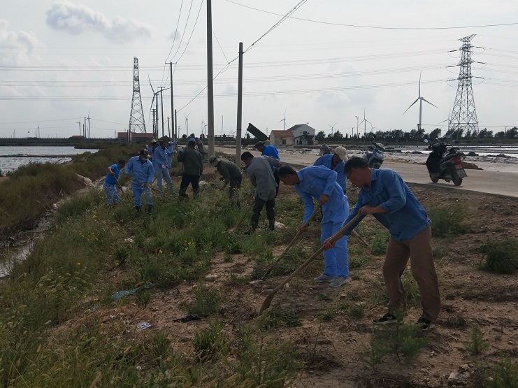 各班組抽調生產骨干由班長親自帶隊,對0班一期道路兩邊的雜草、廩基、副廩基、大池道、門面溝,值班房等進行了整治。大大改善了灘容灘貌,新河員工們發揮了不怕臟不怕累的精神,并努力推動養成人人愛護環境,人人保護環境的良好氛圍,使新河制鹽公司環境整治工作再上一個新的臺階。(李明佰)