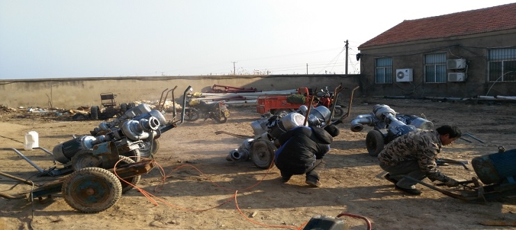 為確保一月底前完成扒鹽設(shè)備維護(hù)保養(yǎng)工作,日前,機(jī)械設(shè)備服務(wù)中心召開(kāi)班組骨干會(huì)議,進(jìn)一步明確維修任務(wù),細(xì)化、量化到人頭,注重維修安全,向目標(biāo)沖刺。該中心機(jī)修人員能不畏嚴(yán)寒,搶時(shí)間維修保養(yǎng)扒鹽設(shè)備,目前10臺(tái)帶鹵扒鹽唐30、6臺(tái)破碴唐30、10臺(tái)扒鹽大架已全部維護(hù)結(jié)束。20臺(tái)鹽泵已進(jìn)入上漆保養(yǎng)階段。(下圖為設(shè)備上漆保養(yǎng))