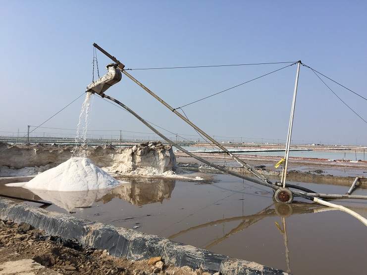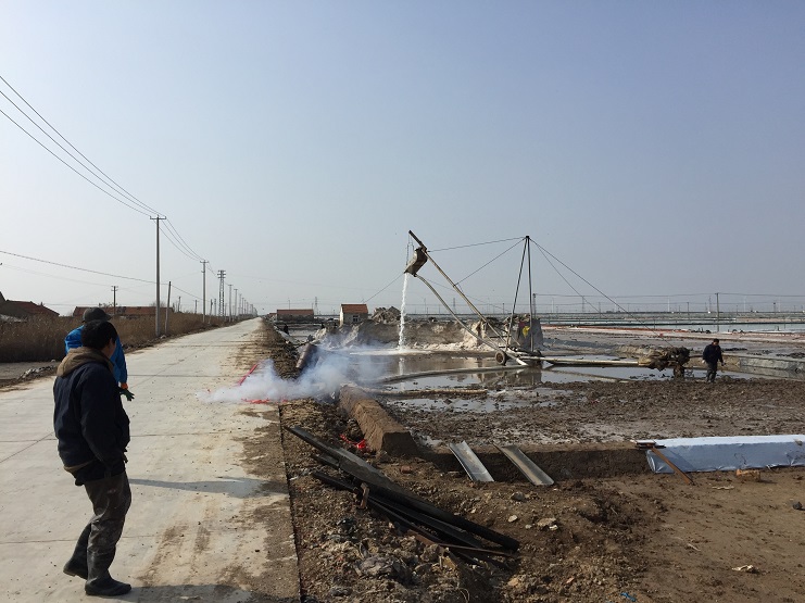 2月25日上午九點(diǎn)十八分,伴隨著鞭炮聲清脆響起,新河制鹽分公司五班二號(hào)扒鹽機(jī)組輸鹽大架銀瀑飛濺,拉開了新河制鹽春季扒鹽的序幕。
