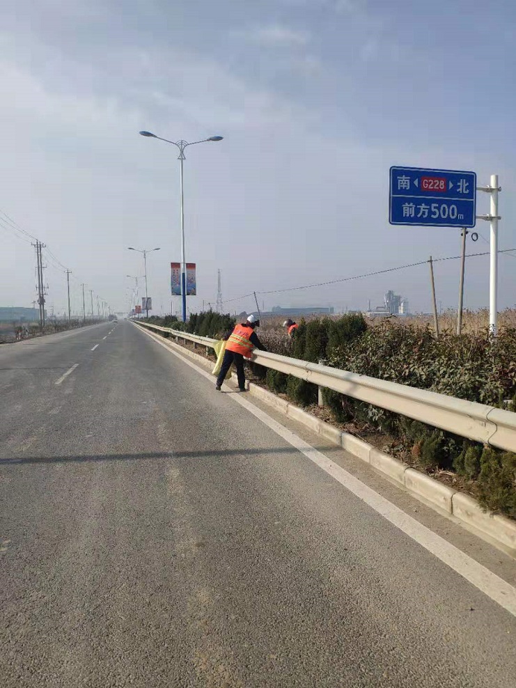 保潔人員在228國(guó)道撿拾垃圾