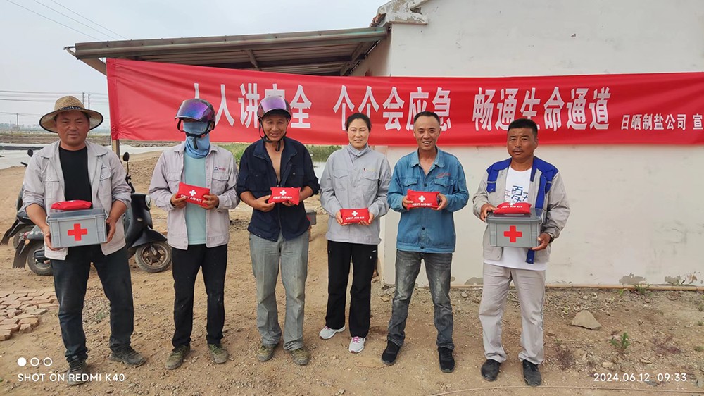 為切實(shí)保障職工在高溫季節(jié)戶外作業(yè)時(shí)的身體健康和安全,同時(shí)做好公司全體職工人人講安全,個(gè)個(gè)會應(yīng)急的要求。6月12日上午,海水鹽生產(chǎn)基地開展了防暑藥箱及個(gè)人應(yīng)急包發(fā)放活動(dòng)。