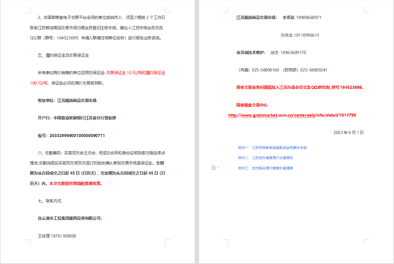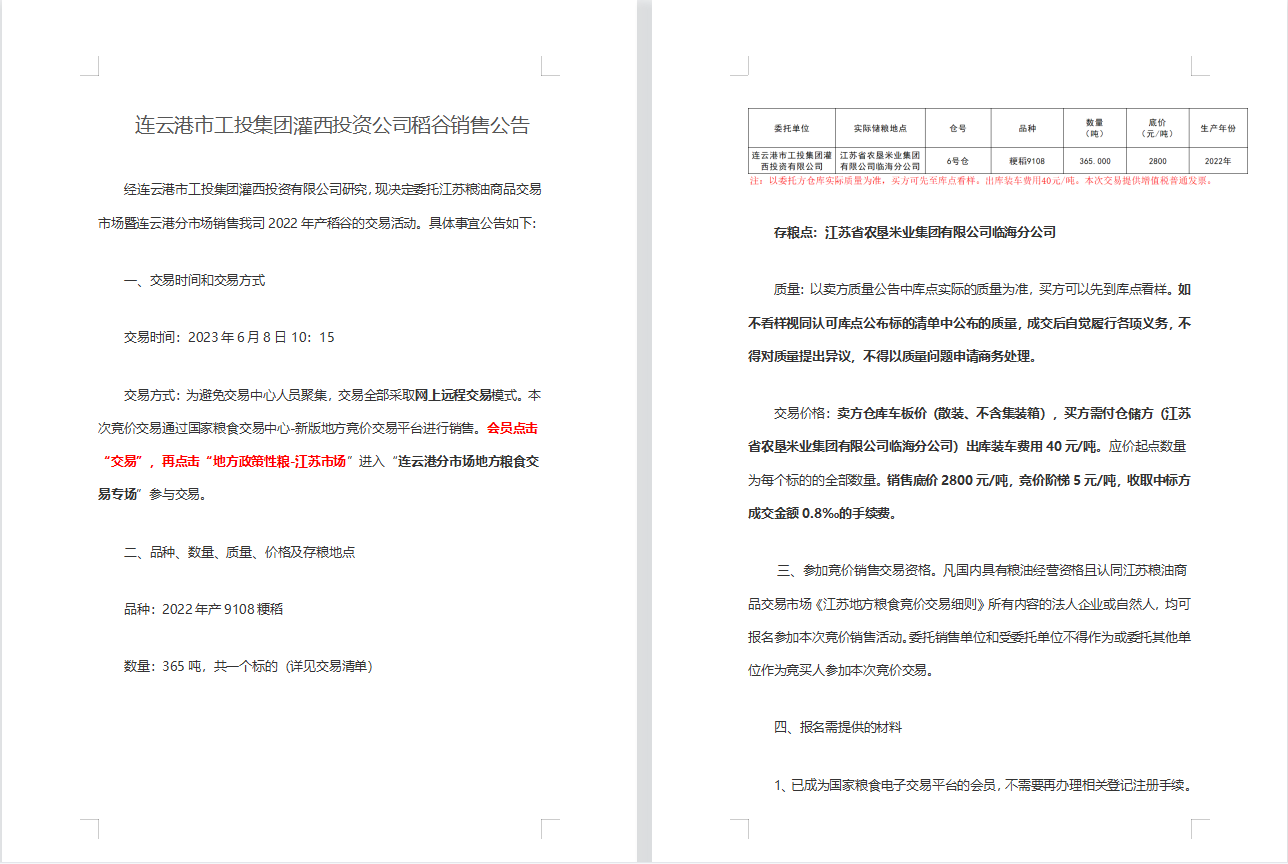 連云港市工投集團灌西投資公司稻谷銷售公告