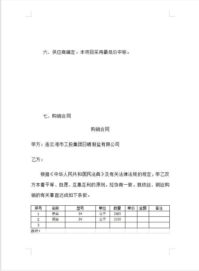 鐵絲、鋼絲采購公告