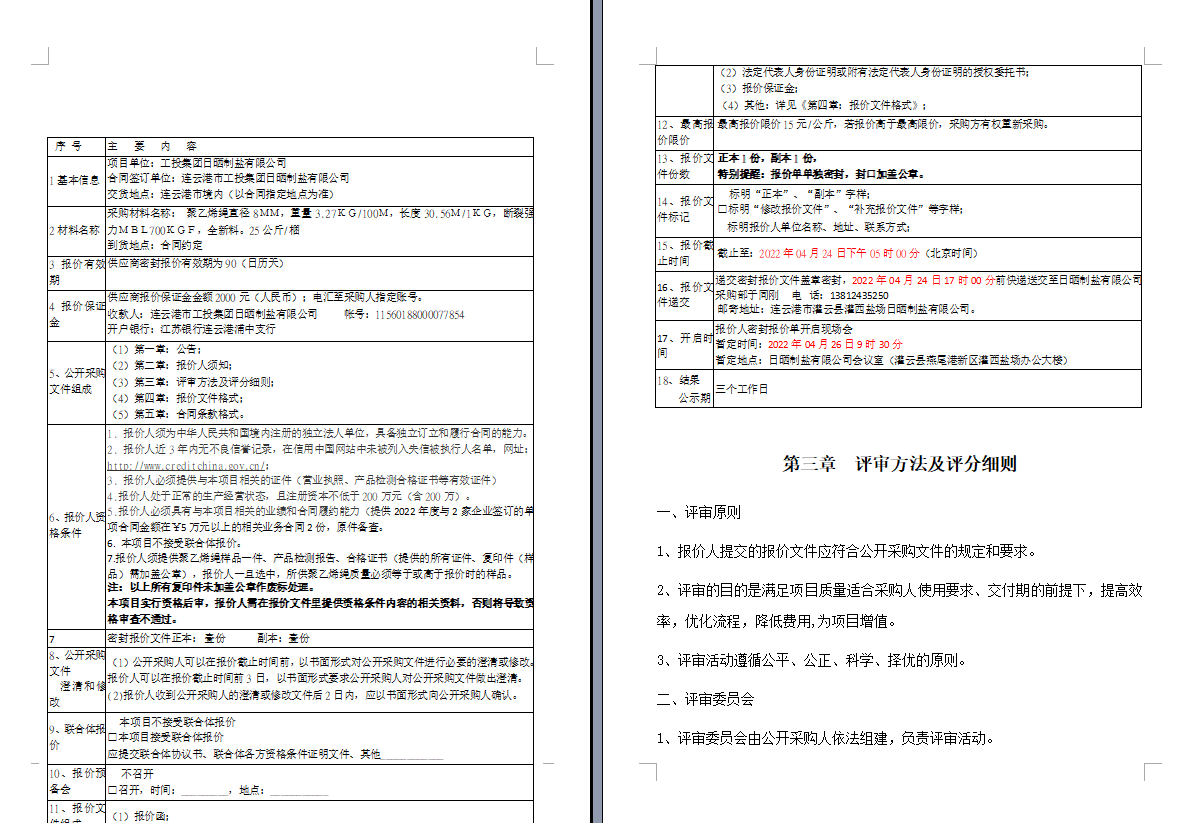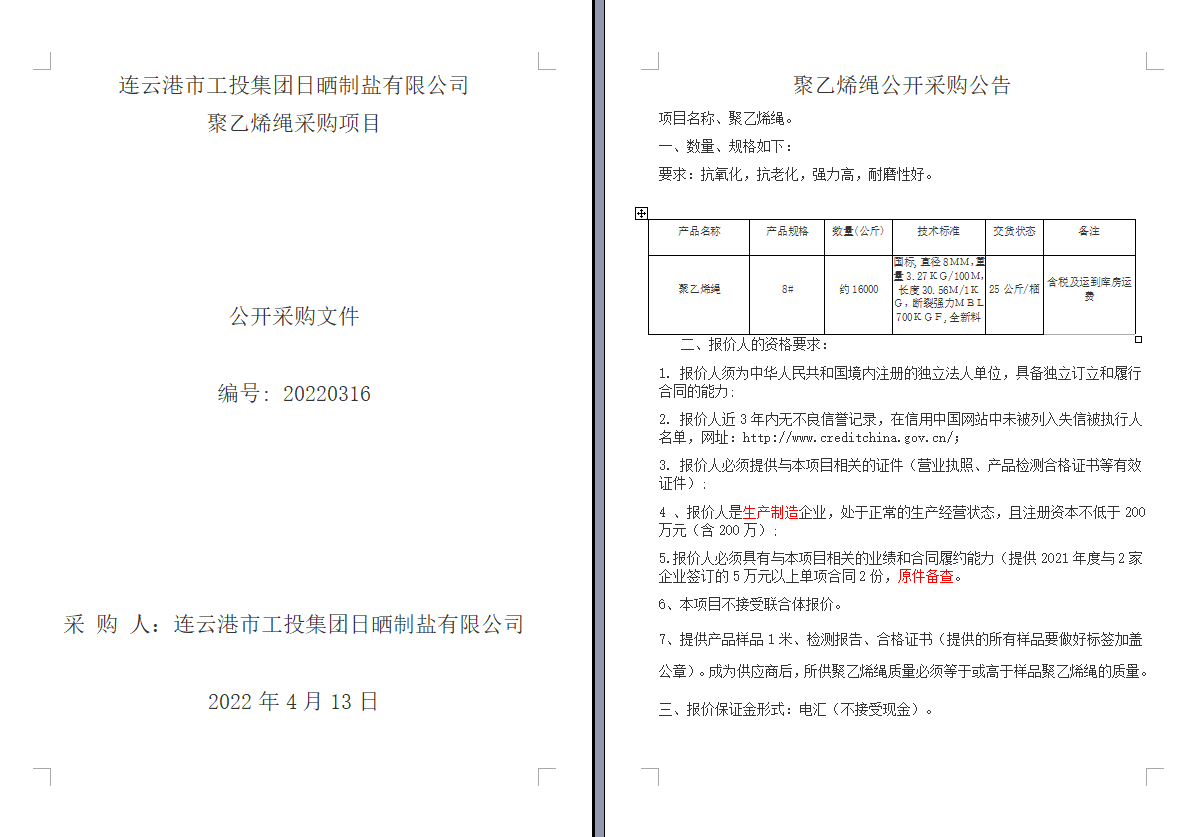 連云港市工投集團日曬制鹽有限公司聚乙烯繩采購項目