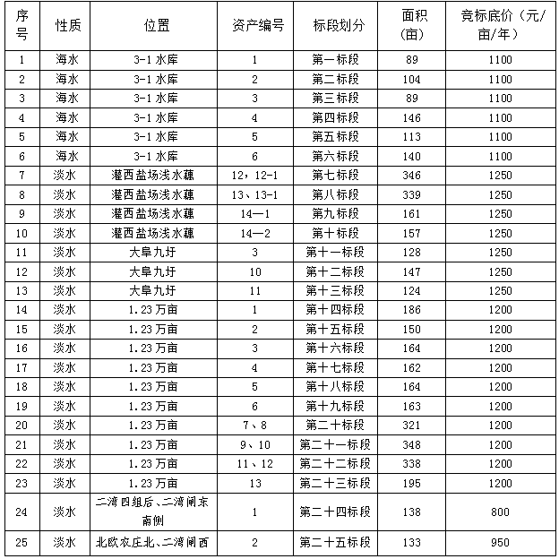 根據連云港市工業(yè)投資集團有限公司《連云港市工業(yè)投資集團有限公司資產出租管理辦法》(連工投司〔2017〕72號)規(guī)定,經灌西投資公司池塘租賃領導小組研究決定,對2020年2月24日公布“灌西投資公司養(yǎng)殖池塘競標公示” 中部分條款進行變更,現公示如下: 一、競標池塘方式變更:原采取暗標方式現變更為采取明標方式。 二、池塘租賃年限:原1.23萬畝淡水區(qū)域池塘租賃期限2年變更為1年。 三、競租池塘各標段競標底價: 灌西投資公司池塘租賃領導小組 2020年 2月 26日