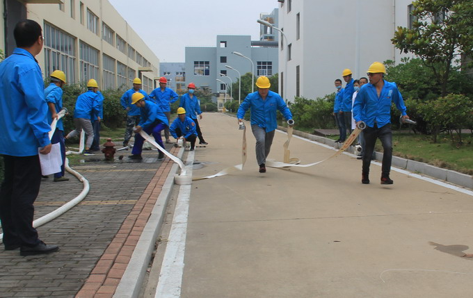 本次演練分為火災應急疏散演練、消防技能比武和火災事故應急救援演練三個部分展開。在火災應急疏散演練中,設定三樓會議室為模擬火災現場,在滾滾濃煙下,參演人員2分鐘內從指定逃生路線規范、有序、迅速撤離到了安全地帶。有5支參賽隊參加消防技能比武,每支隊伍3人,依次進行比賽,發令后,參賽人員按規程接水袋、連水槍、開消防栓、沖向目標、擊倒火源點,用時最短者勝出。經過激烈的角逐,最終機關代表隊勇奪第一。火事故應急救援演練模擬紙箱庫著火,分信息報告、啟動應急響應、現場警戒、醫療救護、事故搶險等各處置環節,整個演練緊張有序,過程流暢,達到檢驗應急預案的可行性和提高應急救援人員的應急處置能力的效果,為完善我公司應急預案提供實踐依據。(金安)