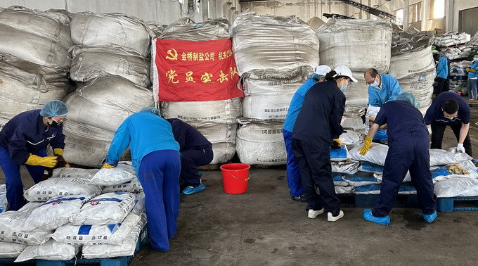 6月6日-6月7日,我公司黨委開展“我為黨旗增光添彩”志愿服務活動。機關支部共30名黨員協助車間整理庫房,共整理成品鹽130余噸。活動的開展進一步發揮了“兩個作用”,積極踐行了志愿服務精神,為車間一線辦實事、解難題。(金宣)